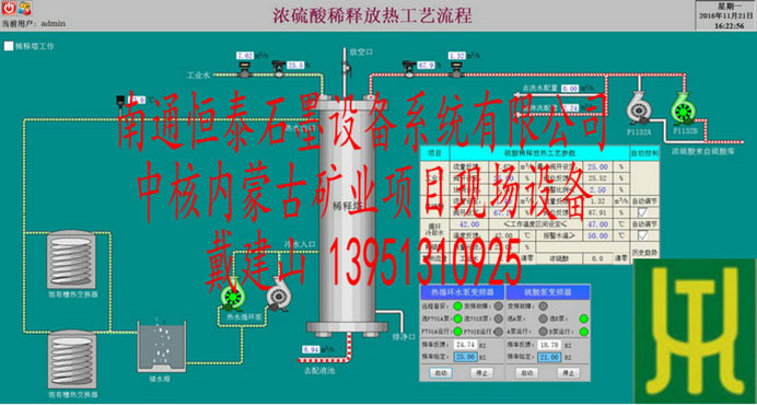 我公司在于中核內蒙古礦業(yè)有限公司蘇尼特左旗分公司的業(yè)務合作中將濃硫酸稀釋過程中放出的熱量通過軟水做載體加熱其他介質。通過硫酸稀釋放熱的綜合利用,為中核一年節(jié)省電費、大宗原材料消耗近60萬元。